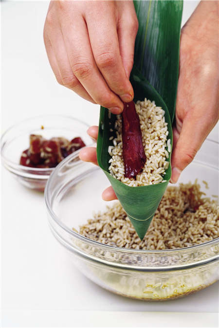 It's not quite that simple, though: In Beijing, it's usual to stuff the glutinous white or purple rice packages with candied or dried jujube, the Chinese red date. Some zongzi are left plain, to be dipped into sugar.