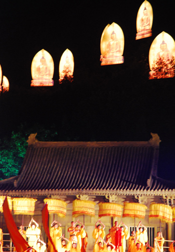 A music ritual entitled "Zen Shaolin" is staged in the Daixian Valley of the Songshan Mountain, near the Shaolin Temple in Central China's Henan Province, April 20, 2008. The Zen school of Buddhism was founded by the 28th patriarch of the Buddhist Bodhidharma in Shaolin in the 6th century. Zen and martial arts are two important features of the Shaolin Temple. [Chinadaily.com.cn]