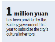 This year, the Kaifeng city government has provided a total of 1 million yuan ($143,420) to subsidize the city's inheritors, according to Fang.