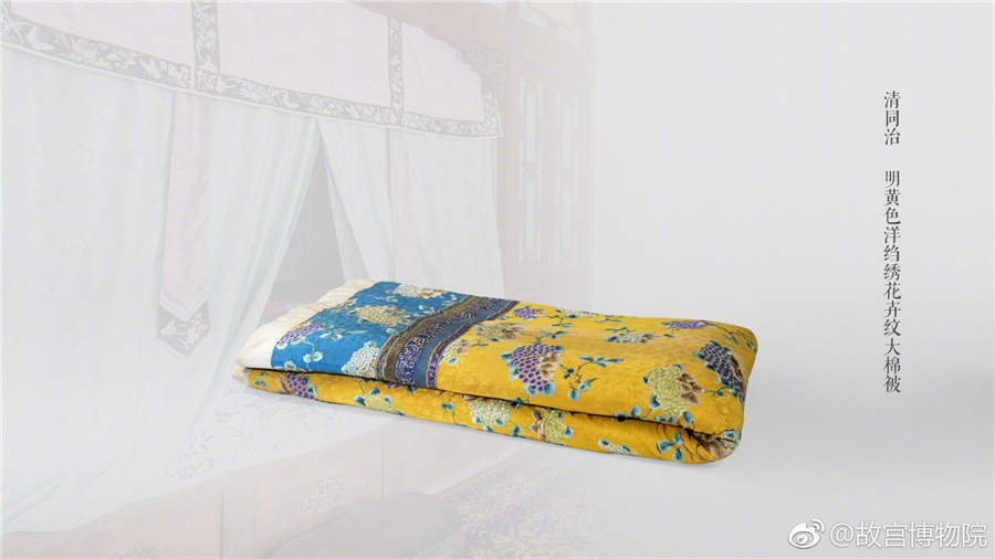 As the chilly winter is around the corner, people are taking out thick quilts from their closets or buying new ones. For traditional quilt, the cover is always embroidered with delicate patterns. During the Ming Dynasty (1368-1644), the main material for making quilt and mattress was cotton cloth and silk fabrics. In the Qing Dynasty (1644-1911), the beddings in families of officials were all made with silk. A range of photos released by the Palace Museum in Beijing on the micro blog Sina Weibo show ancient beddings once used in the Forbidden City. Let's take a look.