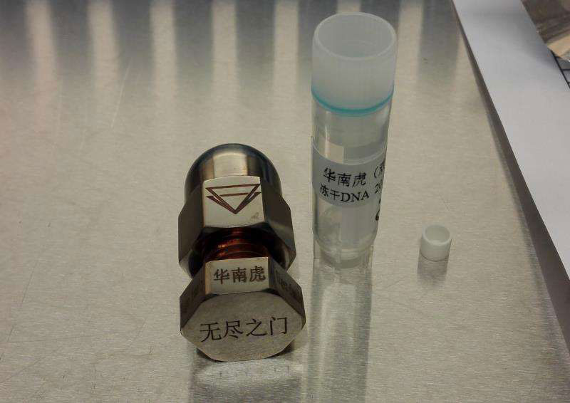 The container for holding the dry powder of DNA of a South China tiger. [Photo provided to chinadaily.com.cn]