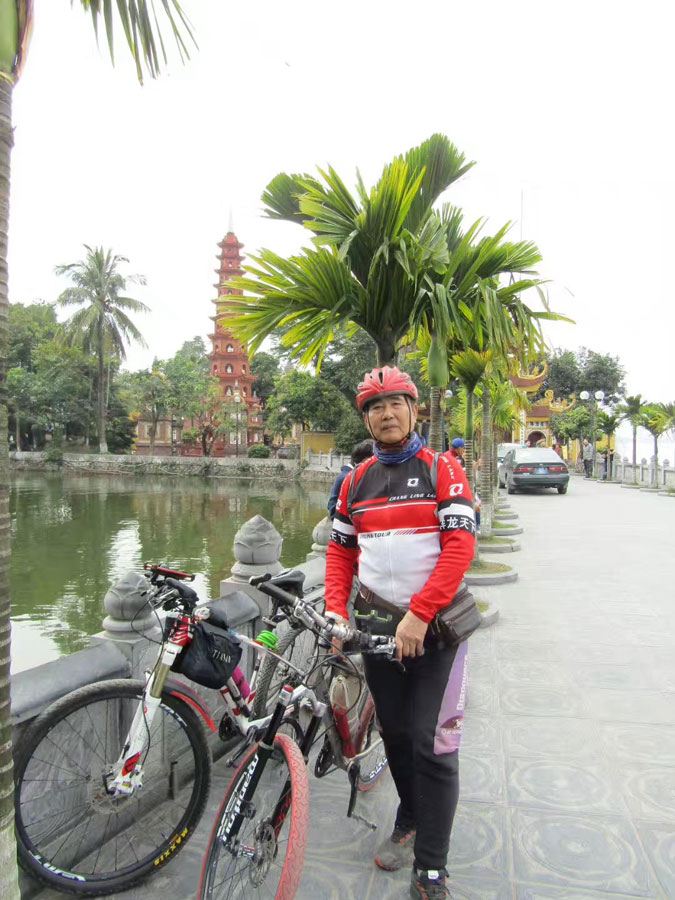 Han, 71, a retired engineer from Harbin, capital city of Northeast China's Heilongjiang province, finished an approximately 6,000-kilometer bicycling journey through Vietnam, Cambodia, Thailand and Laos together with five fellow travelers two weeks ago.