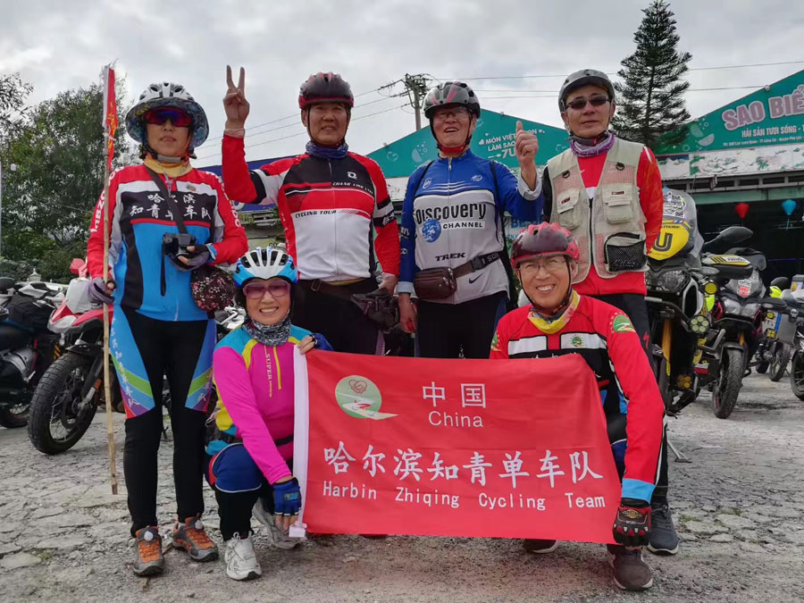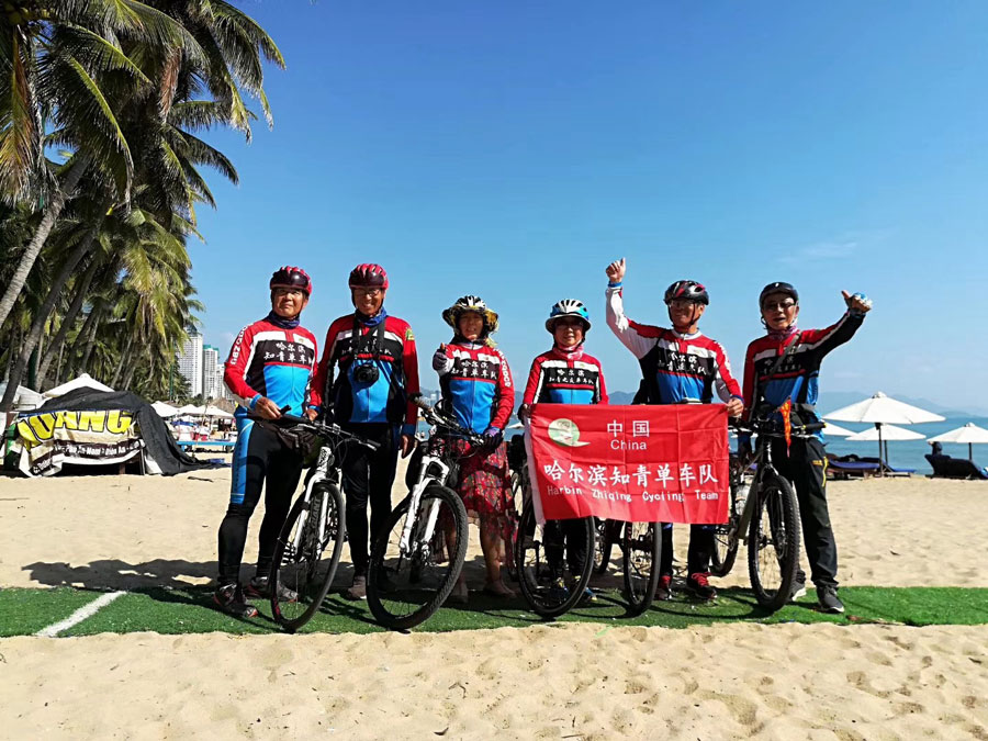 Starting from the Chinese-Vietnamese border port of Dongxing in South China's Guangxi Zhuang autonomous region, the six cyclists, aged from 55-71 and hailing from Harbin, finished their journey in 74 days.