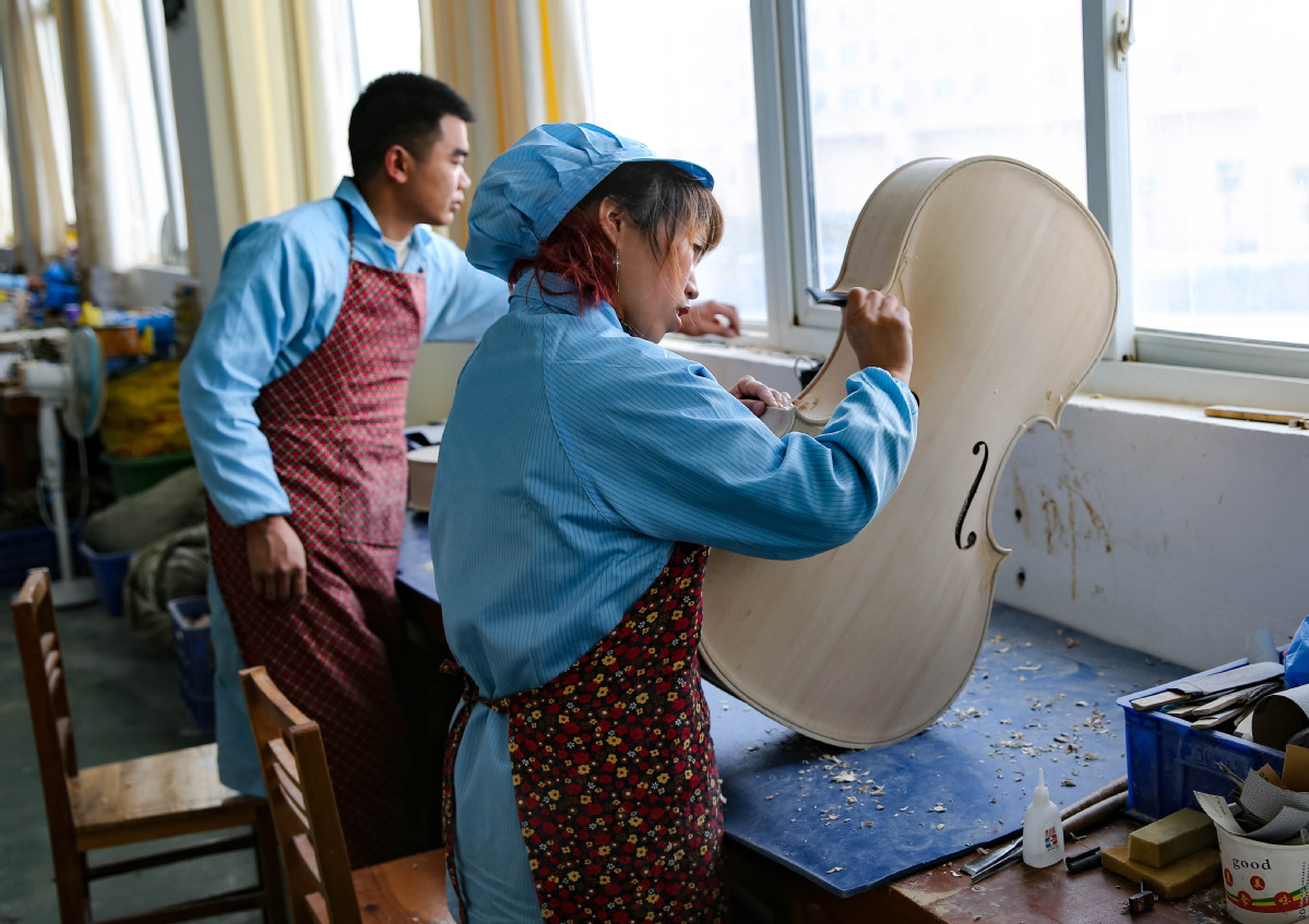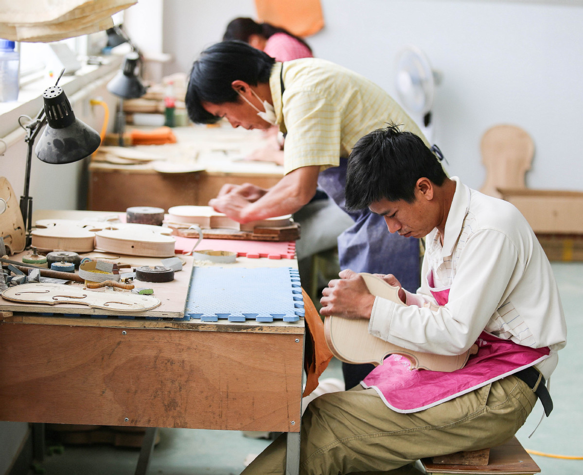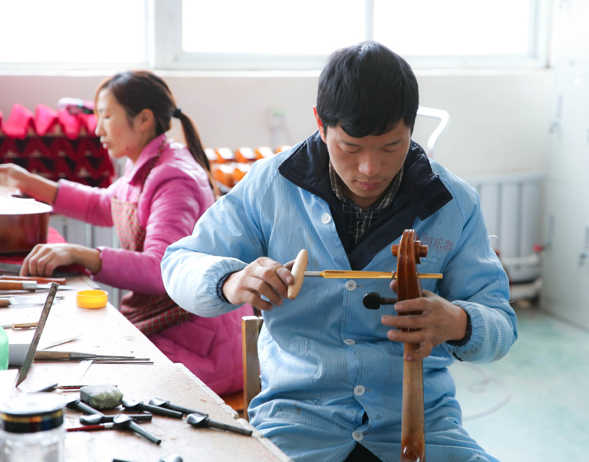 Over 50,000 violins have been produced in their plant staffed by over 60 masters, bringing an annual revenue of 20 million yuan, with many sold to Western countries like the US, Germany, Australia and Spain.