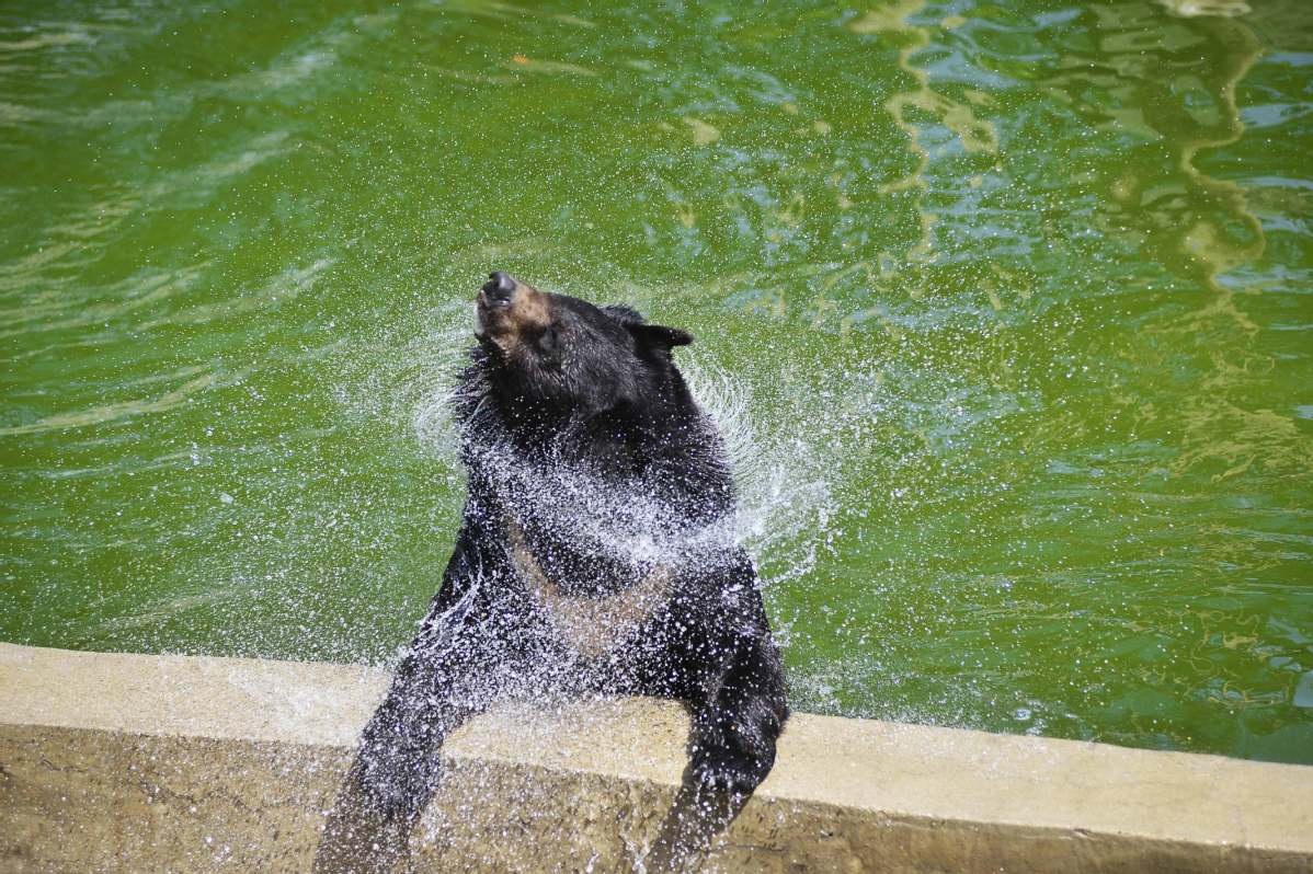 A bear swims in a pool to cool itself in Tianjin Zooon July 4, 2019. [Photo by Shi Song/for chinadaily.com.cn]