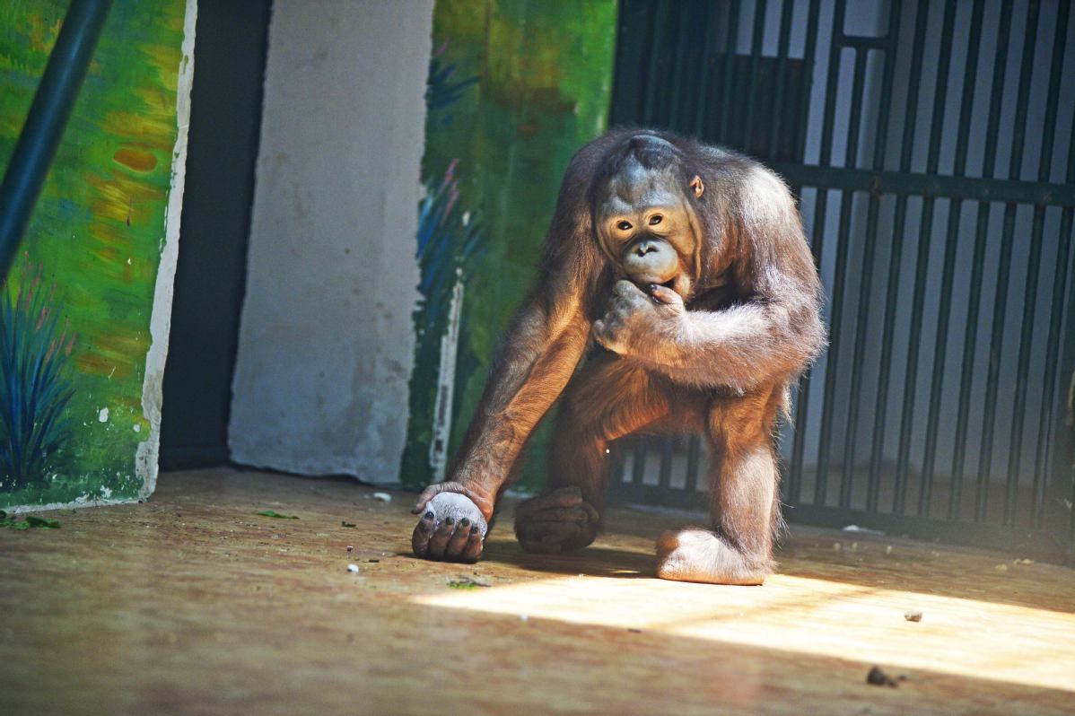A gorilla enjoys a room with air conditioning in Tianjin Zoo. [Photo by Shi Song/for chinadaily.com.cn]