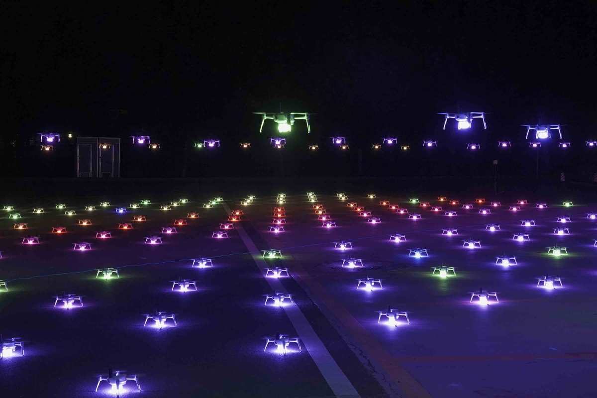 The 200 drones, all controlled by a computer, can make a variety of flexible designs for a performance in Xinmi, Central China’s Henan province, Saturday night. [Photo provided to chinadaily.com.cn]