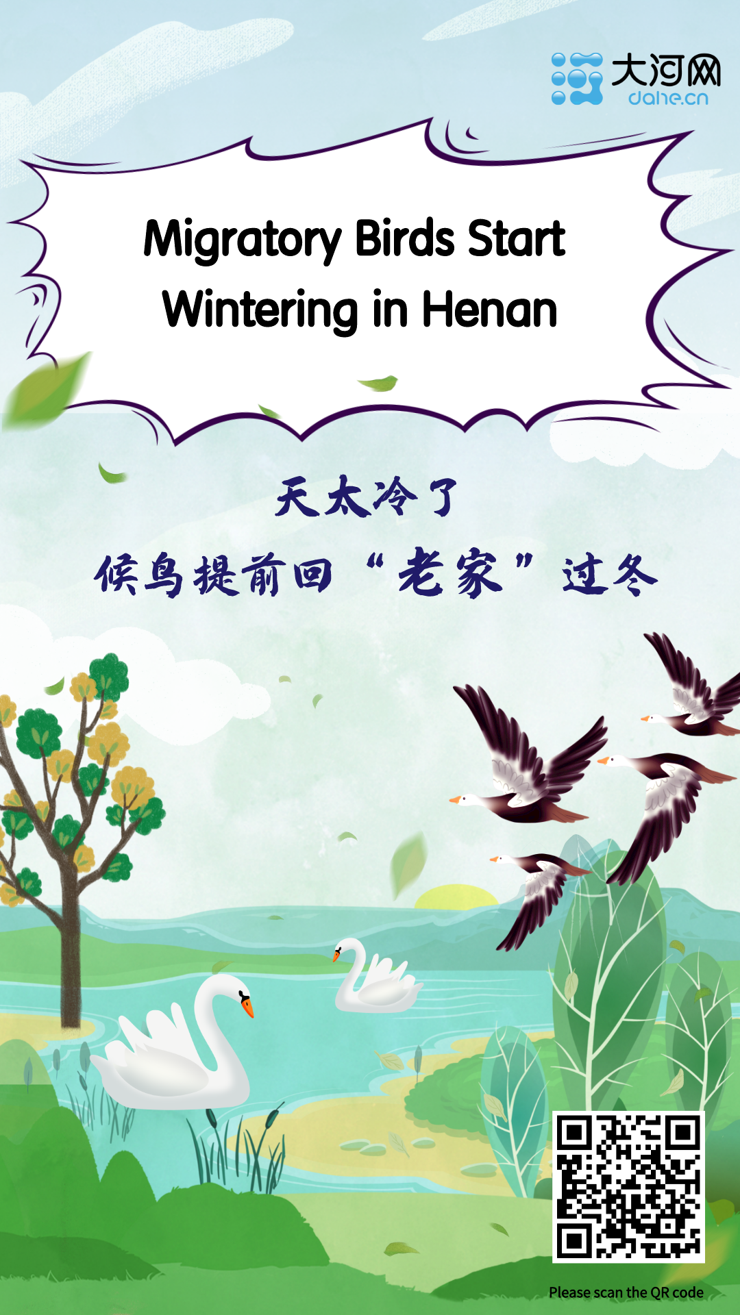 在郑州黄河湿地自然保护区,根据工作人员的观察记录,迁徙路过南下越冬的鸟群数量在10月中下旬已达到顶峰。(中文来源/河南日报 记者/刘晓阳 编译/赵汉青 海报/王君艺 审校/白玉杰)