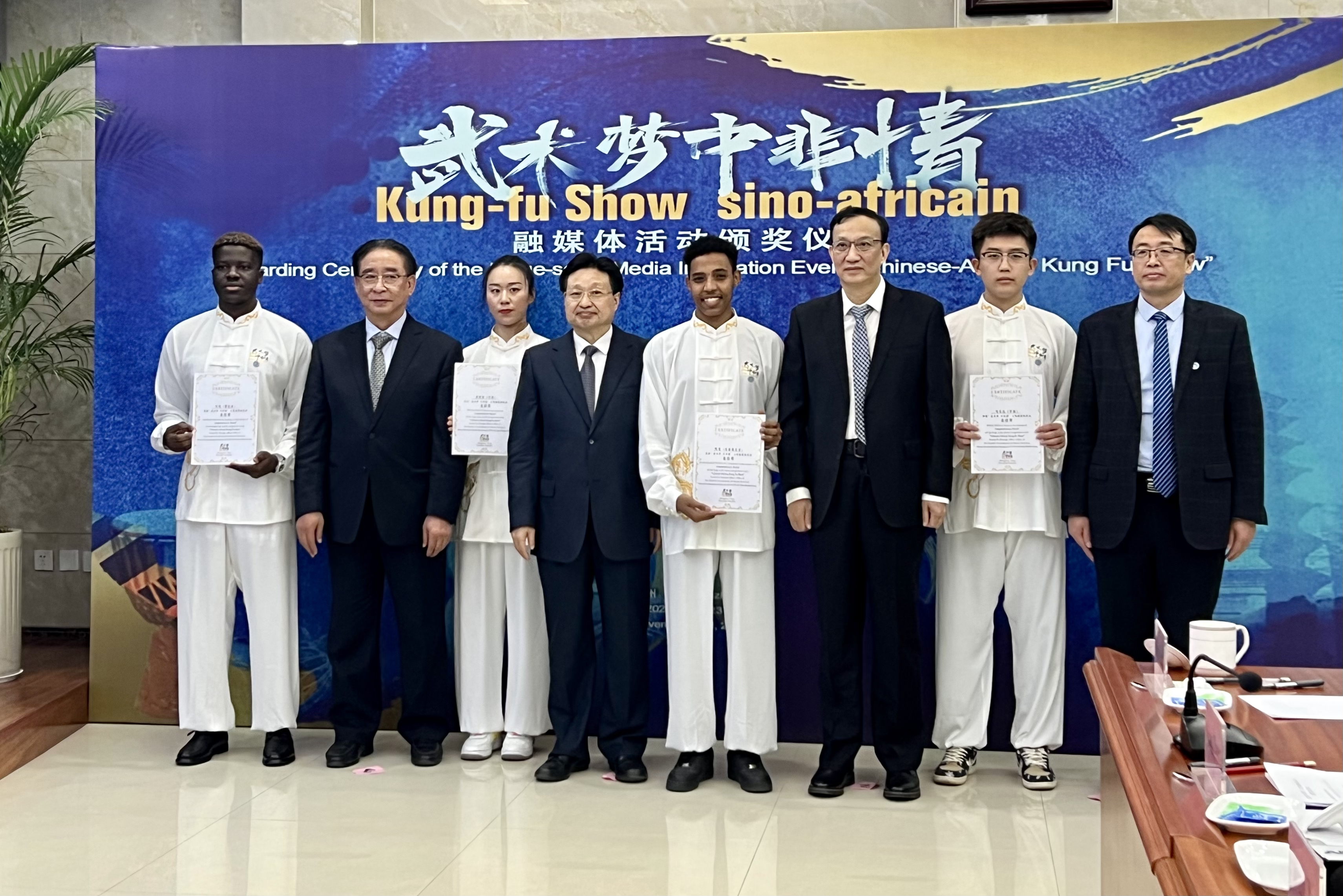 "I love Wushu (also known as martial arts), Henan and China!" At the Awarding Ceremony of the Large-scale Media Integration Event of "Chinese-African Kungfu Show" on the afternoon of November 23, Ali, one of the prize winners from Ethiopia who is now studying at Henan Polytechnic University, expressed his love for Chinese Wushu and culture.