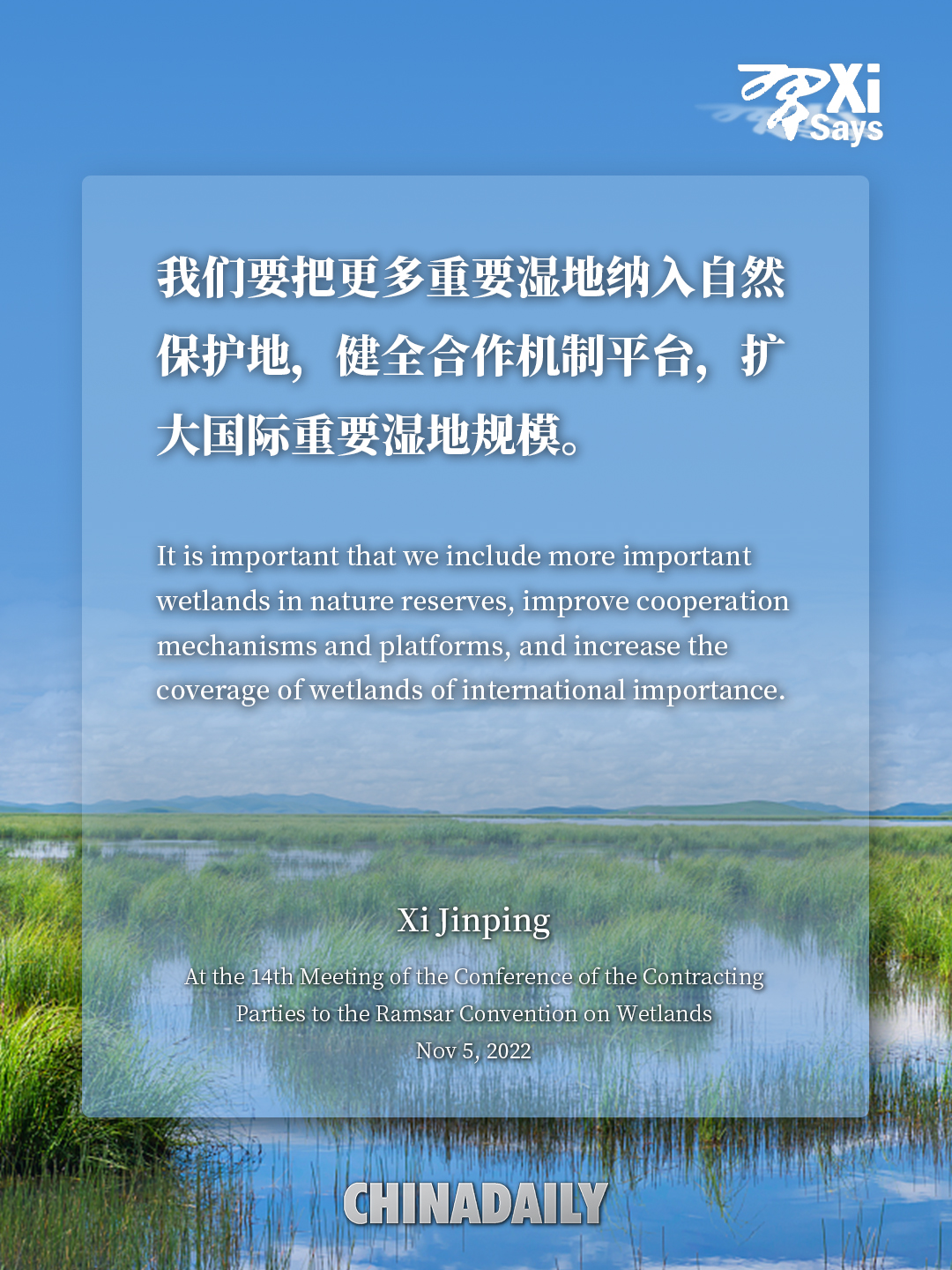 World Wetlands Day is celebrated around the world each year on February 2. Let's read some of President Xi Jinping's quotes on wetlands conservation.