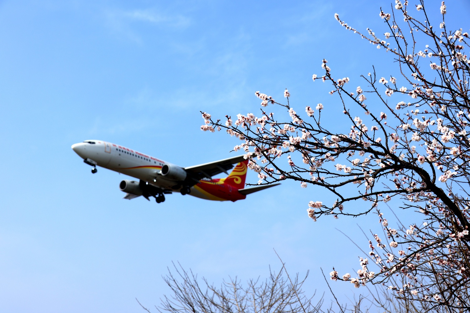 3月19日,在机场外围,灼灼桃花与归来的飞机在蓝天下构成一幅绝美画面,将春日的浪漫写进每一次起落。当巨大的飞机带着轰鸣声从头顶仅几十米处呼啸而过时,那种仿佛伸手可触机腹的震撼,以及“剃头式”的压迫感扑面而来,引得现场惊呼声与快门声此起彼伏。