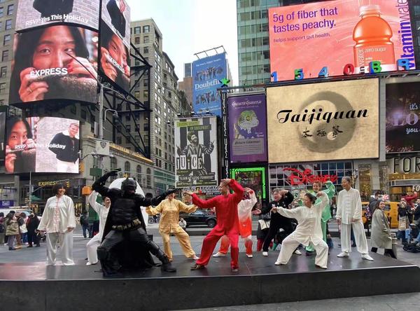 Photo taken in Chenjiagou village, Jiaozuo city, Central China's Henan province, shows Tai Chi master Chen Ziqiang guiding international students in practicing Tai Chi.