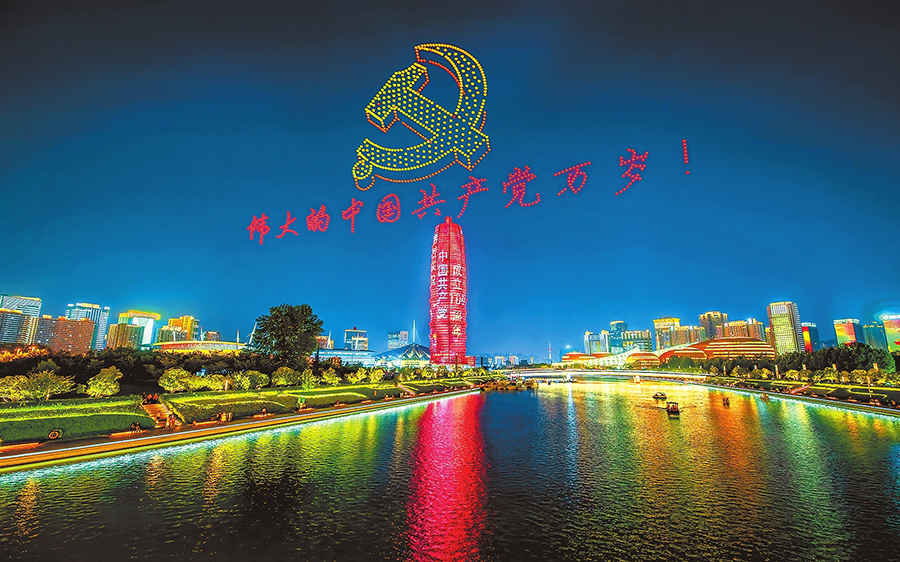 One thousand students from a primary school in Ruyang, Henan province, gathered on Tuesday for calligraphy celebrating the upcoming centenary of the founding of the Communist Party of China.