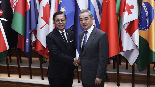 Foreign Minister Wang Yi held a phone call on Tuesday with Israeli Foreign Minister Gideon Sa'ar and voiced opposition to the military strikes launched by Israel and the United States against Iran.